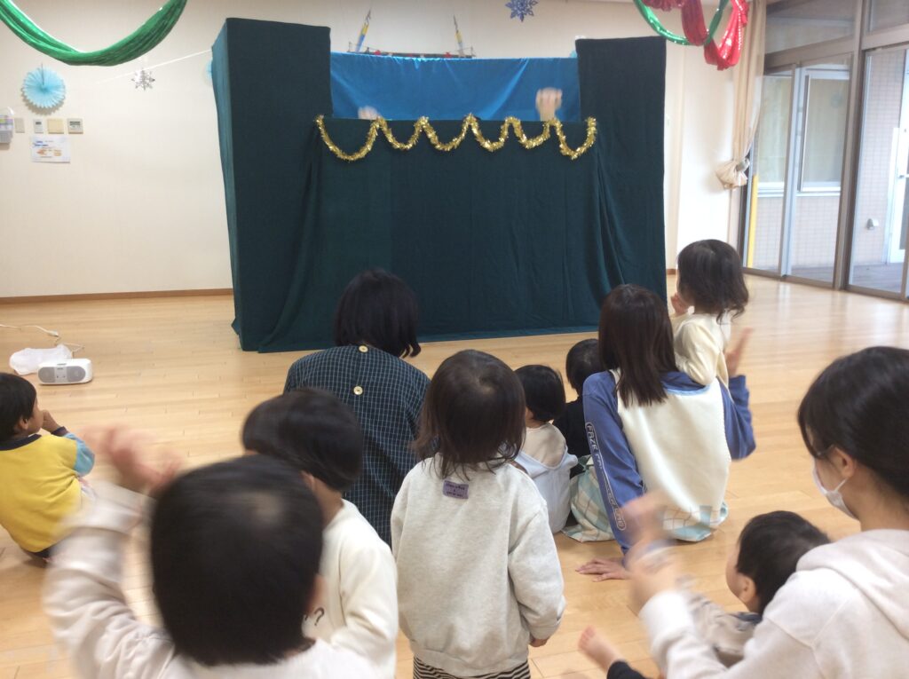 12月5日にボランティアさんによる人形劇がありました。舞台の設定も本格的で、子どもたちが普段口ずさんでいる歌もたくさんありました。 『かえるのうた』『やぎさんゆうびん』『南の島のハメハメハ大王…