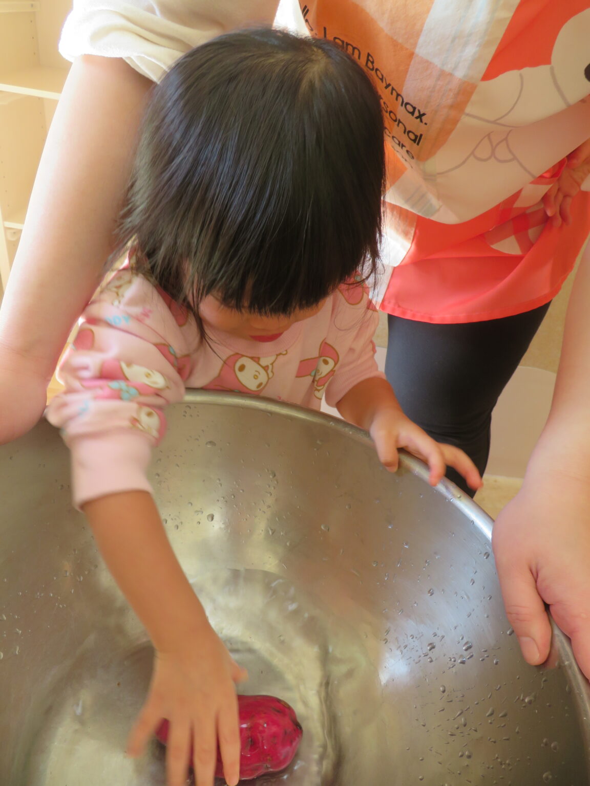 そして初めにさつまいもを洗いました。