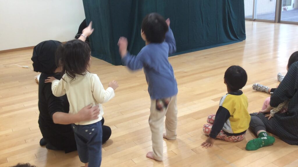 動物の動きに夢中になって見ている子や、楽しくなって全身を使って踊りながら歌っている子、表現のしかたはとっても個性的ですが、みんないきいきと楽しんでいました。
