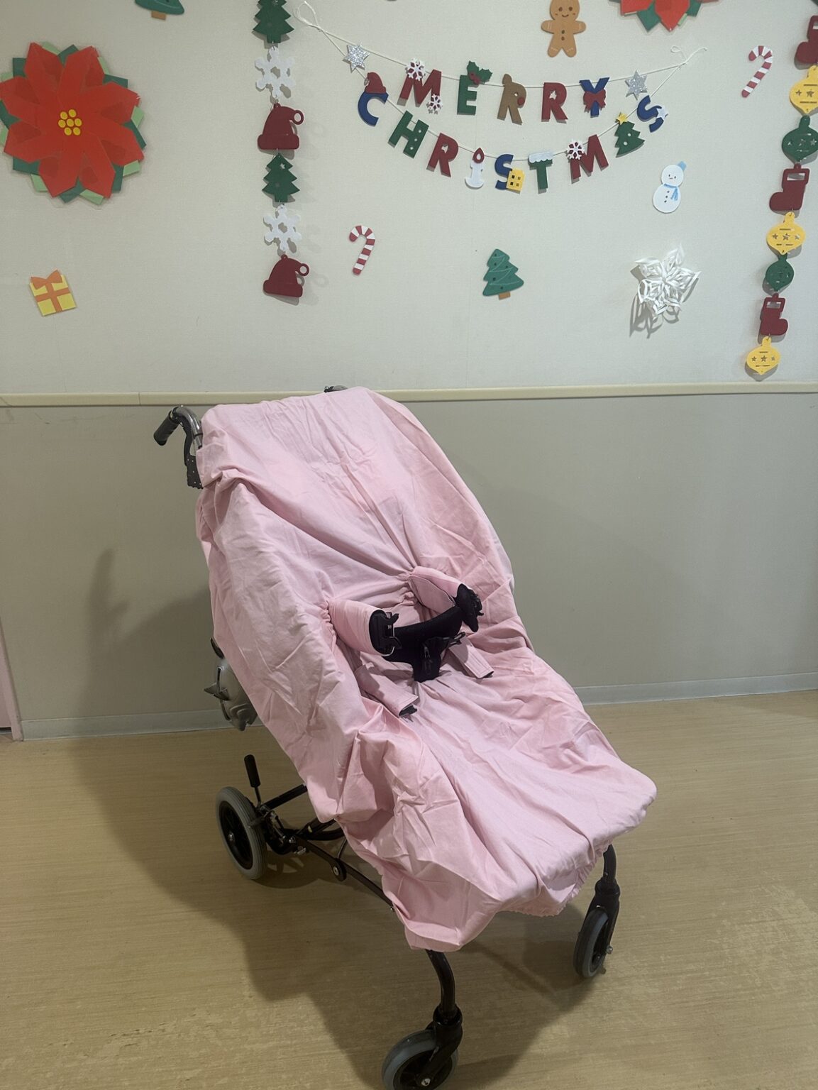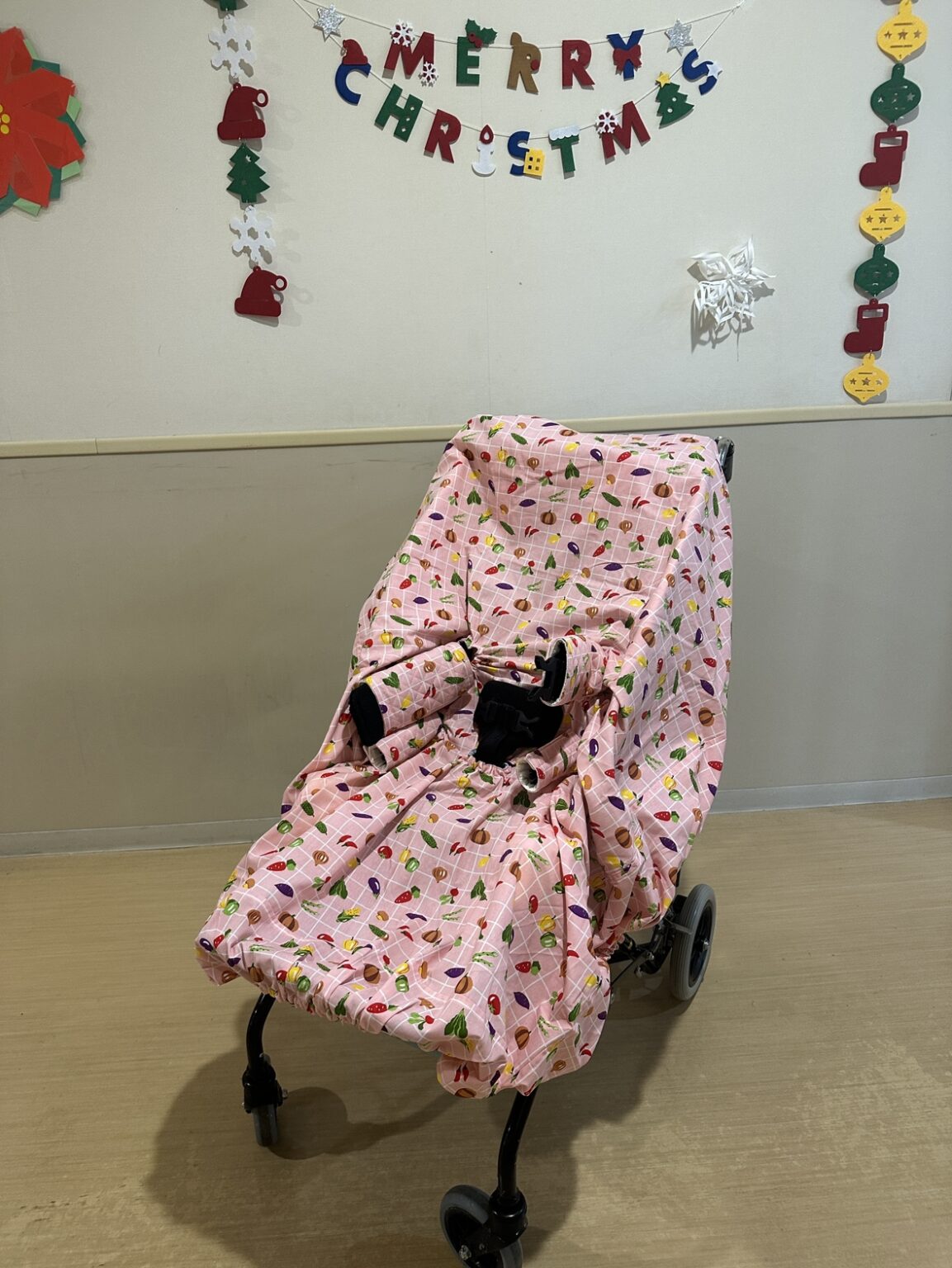 そうした子どもが安心して座れるように専用の椅子を使っているのですが、ご飯がこぼれてもすぐに洗えるようボランティアさんが椅子カバーを作ってくださいました。