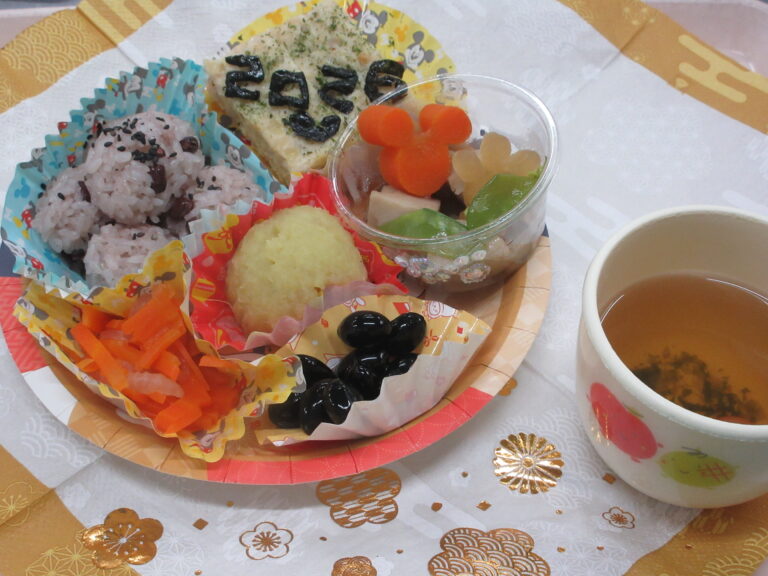 今年も、厨房さんが作ってくれたお正月メニューを食べ、書初めをしました。
