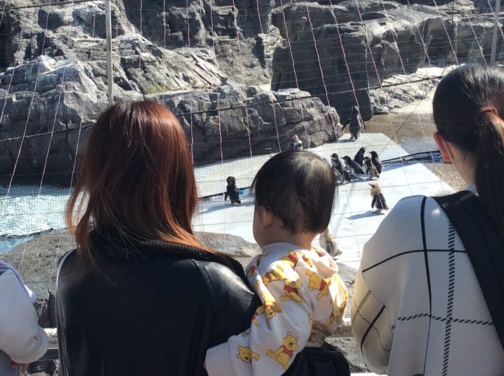 そして水族館では、色とりどりの熱帯魚や水槽の中を悠々と泳ぐマグロ、ペンギンの餌やりなどを目をまん丸にして見入っていました。