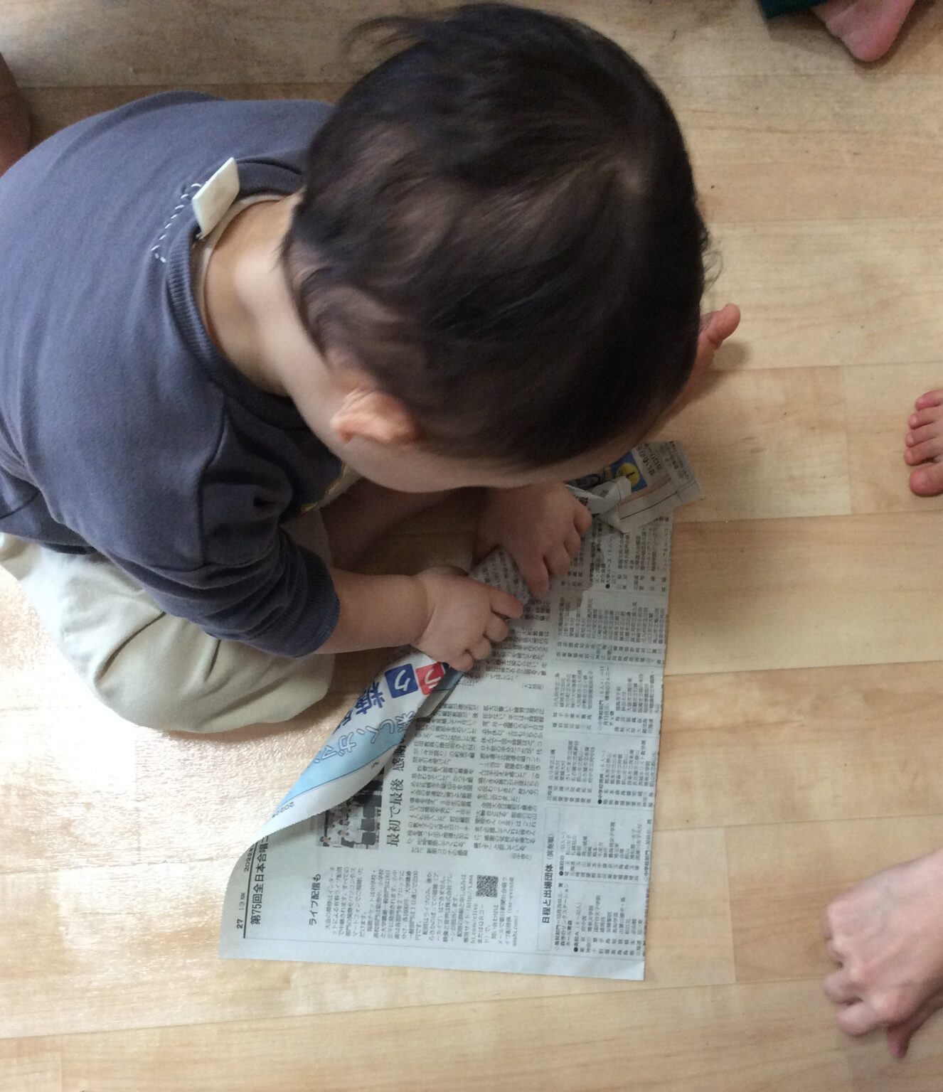 子どもたちが自分でお芋を洗い、新聞紙やアルミホイルに包みました。「おいしくなーれ!」と言いながら、焼き芋への期待を募らせていました。
