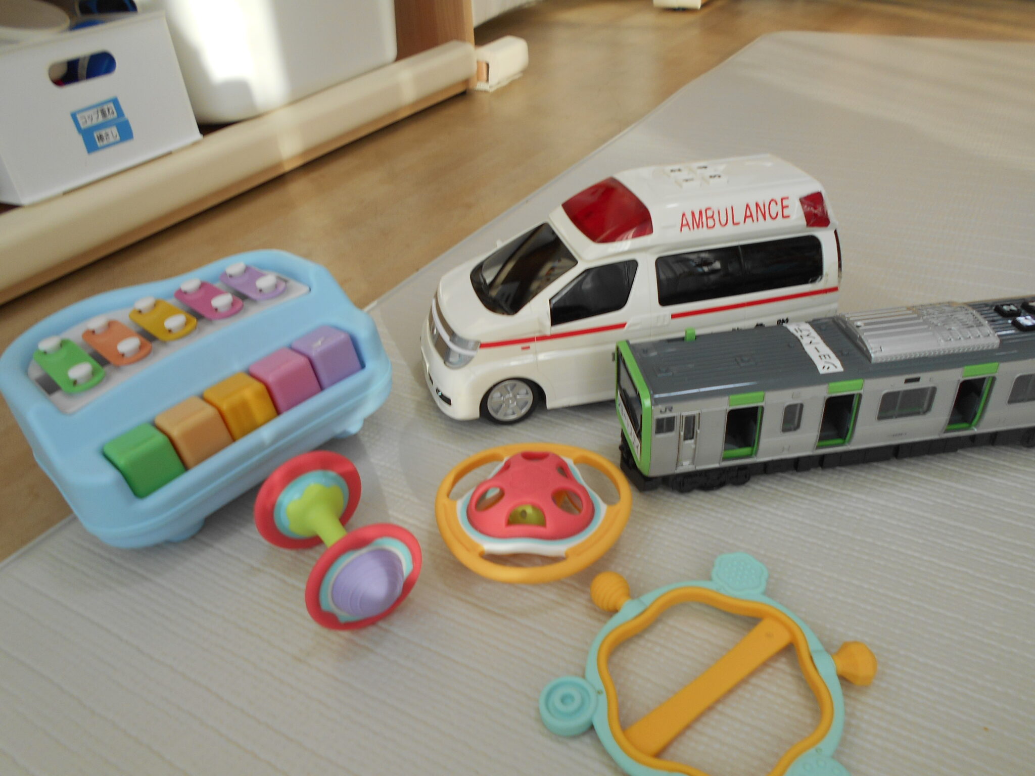 ショートステイでは0歳から2歳になるまでのお子さんをお預かりしています。そのため月齢に合わせたいろいろなおもちゃがたくさんあります。赤ちゃんが遊ぶ、メリーやベビージム。歯固めや音が鳴るおもちゃ。特にバナナが大人気!大きいお友だちはおままごとやブロック。車が好きなお友だちには救急車や電車。子どもたちが自由に好きな遊びができる環境を目指しています。今後も子ども達だけでなく、ご家族がホッとできる場所になれるよう取り組んでいきます。ご利用お待ちしています。