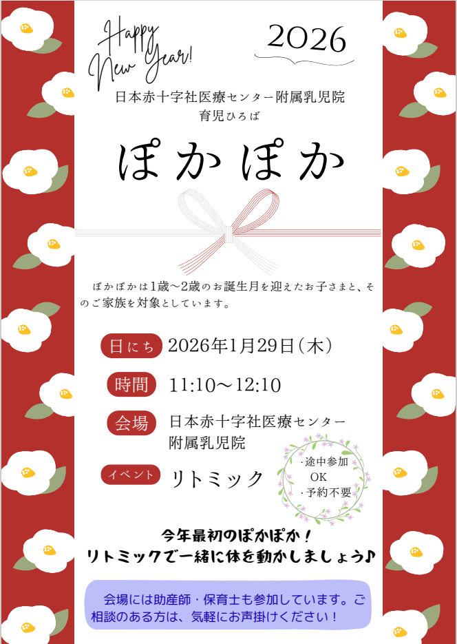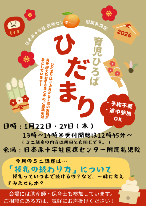 【1月の予定】育児サークル「ひだまり」・育児ひろば「ぽかぽか」