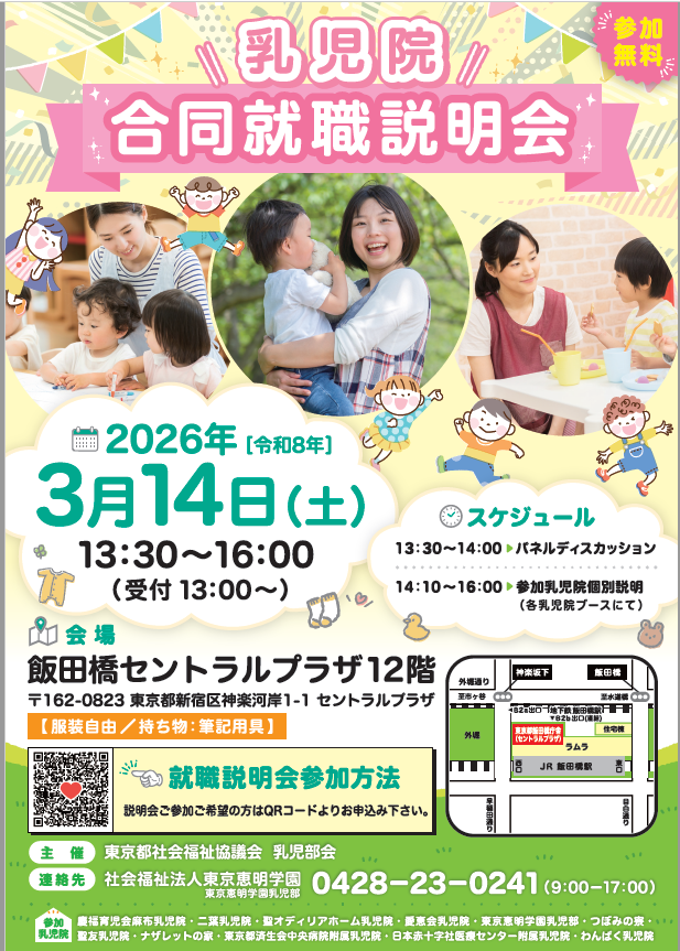 このたび、東京都内の乳児院が参加する「乳児院合同就職説明会」が開催されます。